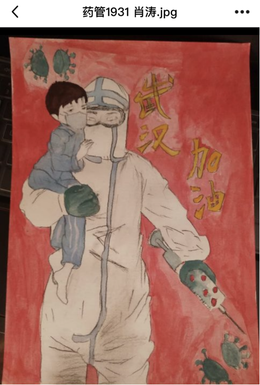 疫情期间,药管1931班开展“共抗疫情,爱国力行”主题宣传教育活动。活动要求学生采取说、唱、写、拍、画等形式,用大白话讲大道理、正气歌凝聚正能量,向抗击在疫情一线的英雄们致敬,为他们送上诚挚的祝福。