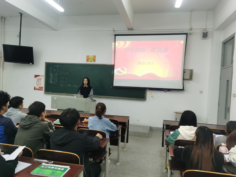 10月5日晚,药品1911班在公共教室1203开展了“三会两制一课”制度团课。本次团课由团支书周双爽主持,全班同学参与团课培训。
