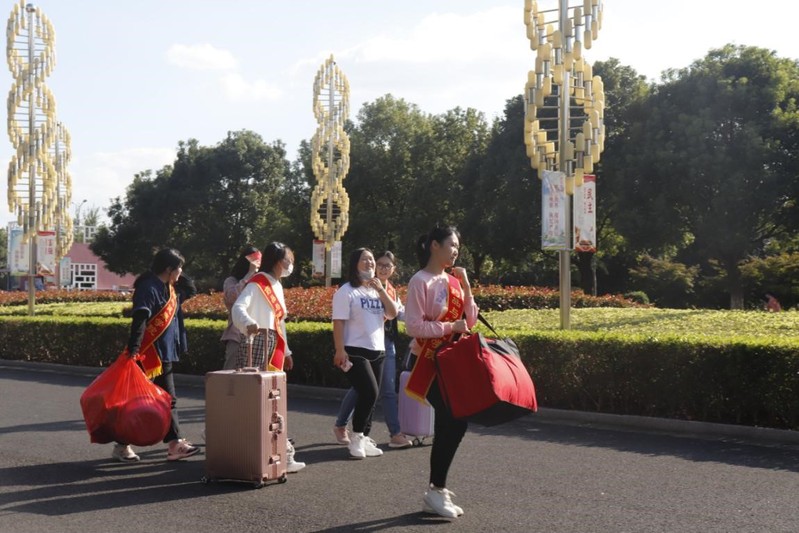 在汽车站设立的接待点,每一趟车一到站,新生和家长一下车,众多的迎新志愿者马上微笑着迎上去:“你好”,“欢迎来到学校”,并“抢”下新生和家长手中沉重的行李。迎新工作如火如荼,到处都是忙碌的身影。