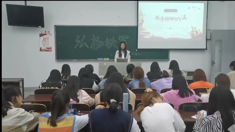 铁军精神主题班会以多种形式开展。首先,由团支书给班级同学讲解铁军精神的含义、由来、传承和弘扬。随后,以演讲和绘画的形式向同学传达铁军精神的内涵。并通过历史纪录片带领学生回顾铁军精神的由来,让大家铭记铁军精神。