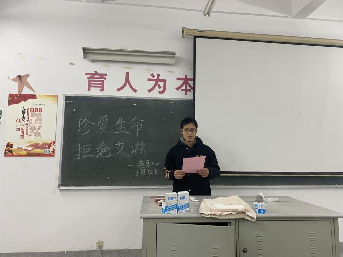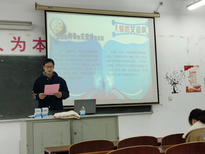 2020年12月6日晚,药品与健康学院药品质与安全2021班全体同学在药学院系部教学楼201教室开展关于“珍爱生命,远离艾滋”主题班会。