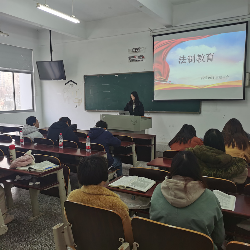 12月4日,药管1931班全体同学在公共教学组团1104开展法制宣传教育主题班会。班会由宣传委员肖涛主持。