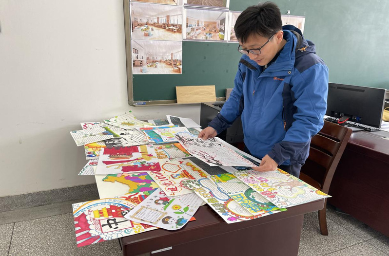 坚持不忘初心、牢记使命,可以为建设中国特色社会主义提供强大的精神动力。祖国对青年一代寄予厚望,作为一名青年团员大学生,要把握好当下的每一天,勇敢肩负起中国的伟大复兴,中国梦的实现责任。在此次活动中同学们也画一幅幅精美的画,照片中李亮书记正在挑选优秀的画作作品。