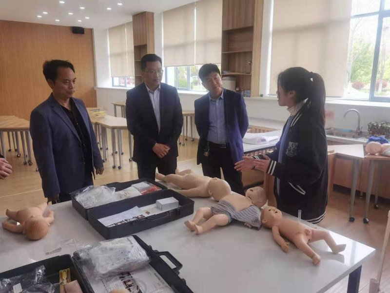 董威辰向来宾介绍了我院婴幼儿托育与服务管理专业转型后的发展方向,并就人才培养、实训基地建设、学生就业等相关问题与来宾进行了交流。座谈会后,王校长一行实地考察了我院婴幼儿托育与服务管理专业教室、实训室等。