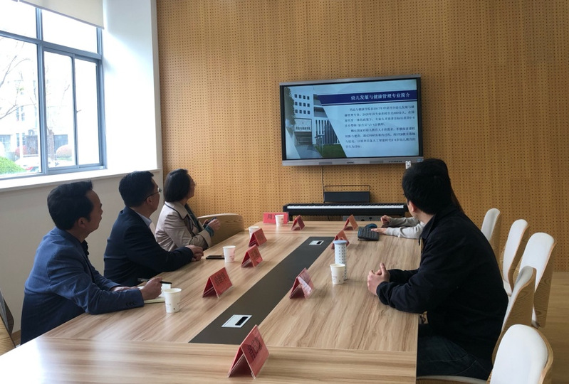 4月21号上午,江苏省赣榆中等专业学校王慈校长一行 五 人来到我院考察交流,婴幼儿托育与服务管理专业带头人董威辰、专任教师许雪儿、肖苏慧等接待了王校长一行。