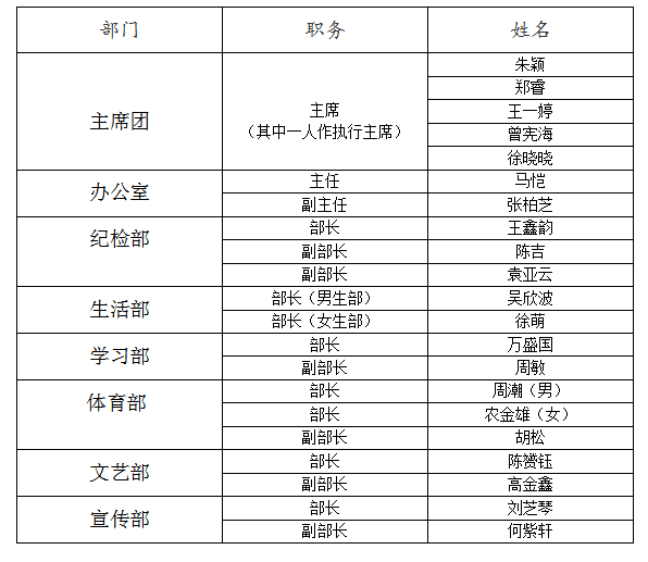 2021年学生会干部名单公示