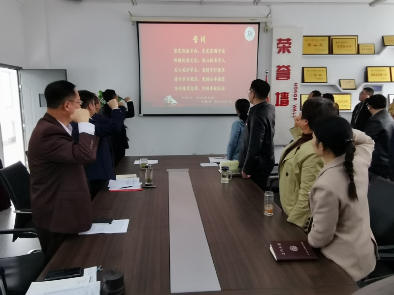 党总支副书记、副院长李亮带领全体教师庄严宣誓,砥砺初心使命,汲取奋进力量。随后,大家共同观看了全国优秀共产党员、时代楷模、全国优秀教师李保国的纪录片,并签订了师德师风承诺书。