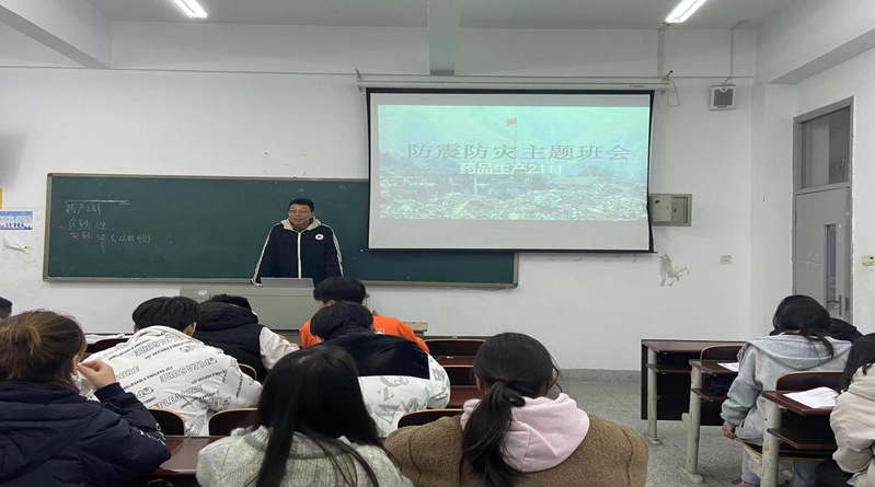 11月25日下午7点,药产2111在1303班级里开展防震减灾主题演讲,班级全体学生参加了此次活动,此次活动有副班长李晋负责。