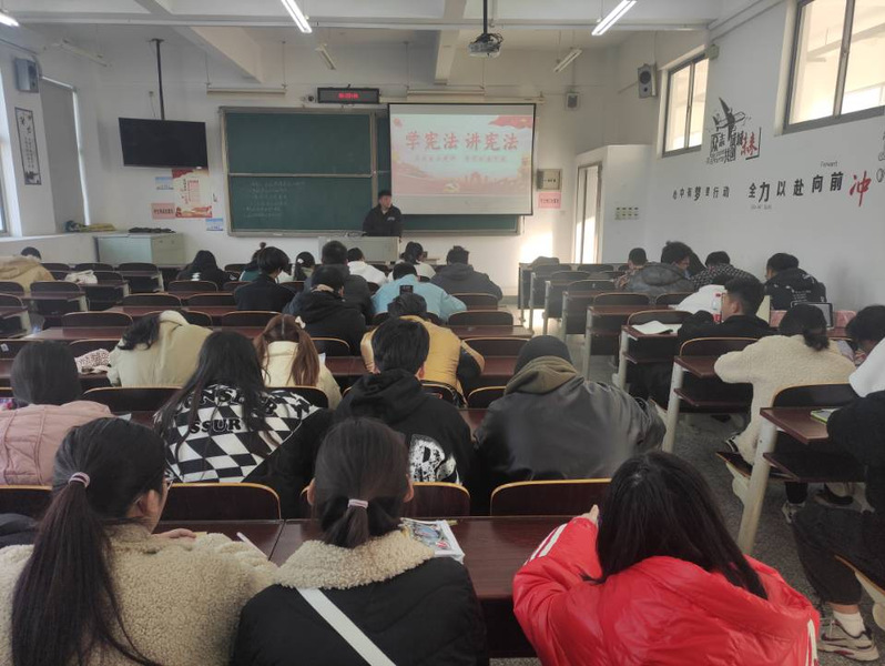 2021年12月2日下午4:00,药品经营2012班全体同学在公共教学楼5102开展关于“学宪法,讲宪法”主题班会。由班长裴晔主持,班主任出席会议。