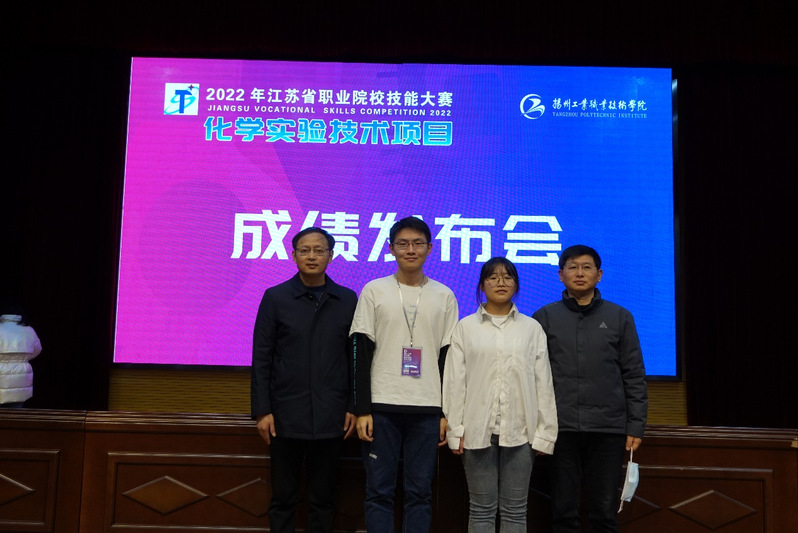 2022年1月8日至11日,江苏省职业院校技能大赛化学实验室技术赛项在扬州工业职业学院举行,来自全省35所高职院校的选手参加了本次技能大赛,共设团体一等奖4名、二等奖7名、三等奖11名。我院药品生产技术专业群的许雨婷、师佳诚、仇苏琪三位选手经过两天的努力拼搏,取得团体一等奖的好成绩。