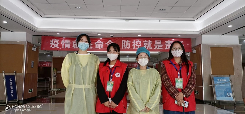 在志愿服务的过程中,她们身穿防护服,协助医护人员完成信息采集、维护秩序等工作。工作中,她们始终保持严谨的工作态度,反复确认、比较,不敢有一丝懈怠。全校师生全员核酸检测时,他们更是忙碌,午餐没吃完,就要迎接下一场工作任务。当有人问道:“这么高强度的工作,你们不累吗?值得吗?”而她们总是这样回答:“帮助他人,快乐自己。我们只是做了自己力所能及的事情,虽然累但是很开心。”