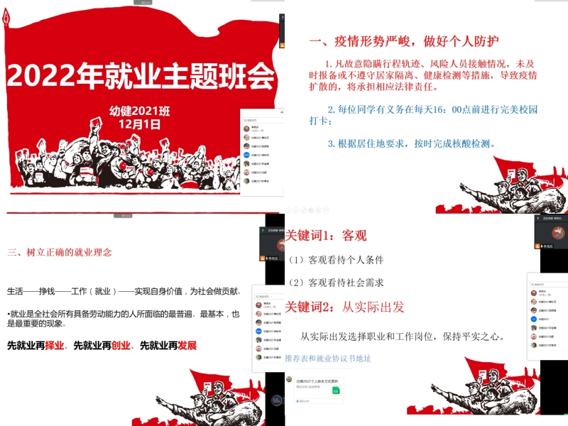 通过本次班会,幼健2021班全体同学更加深刻地了解当前的就业形势,同学们将结合自身实际,制定合理的职业规划。