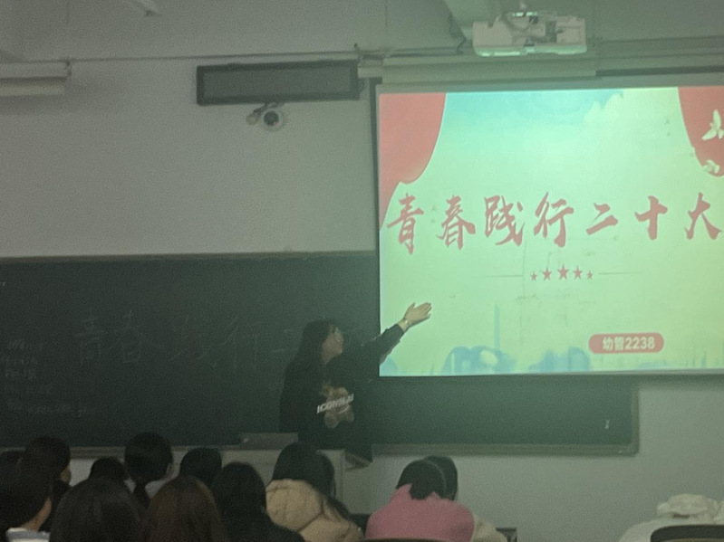 为贯彻学习党的二十大精神,感悟新思想,弘扬家国情怀,争做新时代青年,幼管2238班于2023年3月13日在公共教室5404举行主题为“青春践行二十大”主题班会。会议由团支书阮佳慧主持、幼管2238全体同学参加。