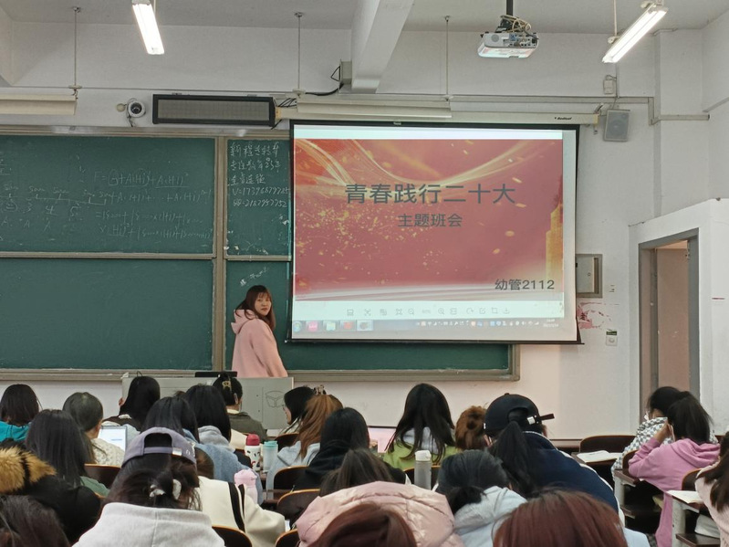 为深入学习贯彻党的二十大精神,3月14日下午,我班召开了以“青春践行二十大”为主题的主题班会。本次主题班会围绕学思践悟二十大、心理健康教育、安全教育和日常管理教育等多个方面的内容,通过奏唱国歌、PPT展示、观看视频、个人讲述、朋辈对话、小组讨论交流、书法展示等多种形式开展教育引导。