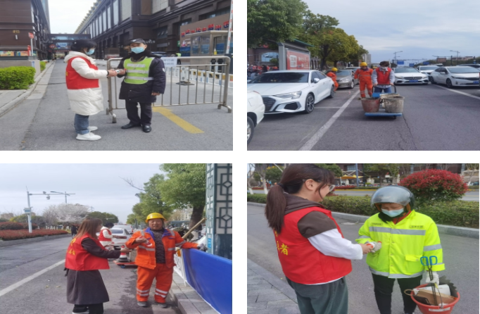 志愿者们帮助环卫工人们打扫卫生,主动接过施工队盛满淤泥的小车,并为环卫工人暖心地送上饮用水,用实际行动做雷锋精神的践行者和宣传员。