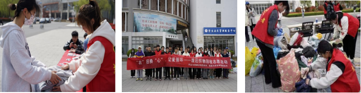 为实现资源的循环利用,让同学们亲自参与到公益事业中,将雷锋精神和志愿精神落到实处,我院开展 “‘衣’旧换‘心’,让爱循坏——废旧织物回收”的活动。全校有将近四百学生捐赠,捐赠数量达到上千件。