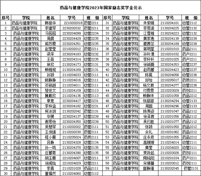如对候选人员有异议,可在公示期内与药品与健康学院学生工作办公室联系。