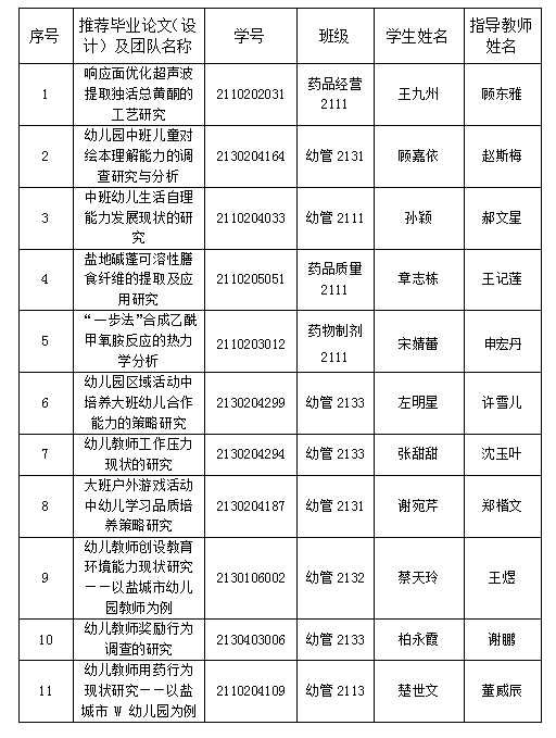 盐城工业职业技术学院 校级优秀毕业论文(设计)及团队推荐公示