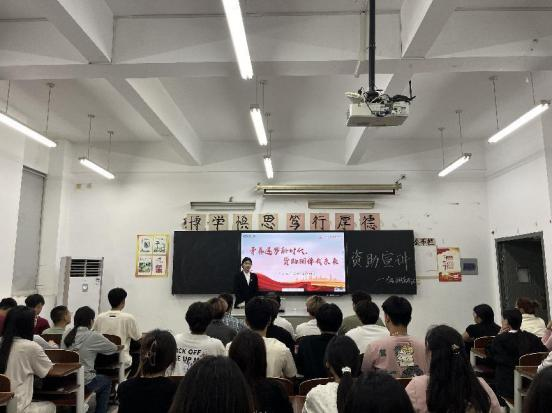 我院资助宣讲团成员徐闻灿同学以自身的成长经历,为参会同学讲述自身奋斗故事,并对国家助学金、国家励志奖学金、助学贷款、勤工助学等资助政策进行了介绍,对不同资助政策的资助标准、申请条件进行了说明,并提供了申请流程以及注意事项等方面的指导。展现了我校学生勤奋学习、积极进取的精神风貌。宣讲现场气氛活跃,同学们纷纷表示要学习榜样精神,传递榜样力量。
