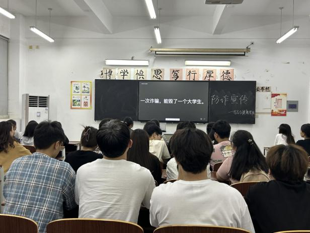 本次活动组织同学们观看了预防金融、电信诈骗的宣传片,通过视频解读、案例分析,加强对新生的警示教育,提醒学生警惕电信诈骗和“培训贷”“创业贷”“助学贷”等各种不良校园贷,提高安全意识和甄别能力。