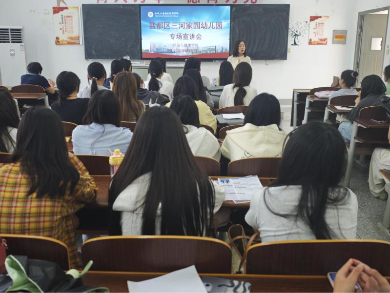 5月27日下午,药品与健康学院邀请盐都区三河家园幼儿园、大冈中心幼儿园于药品与健康学院201教室举办专场招聘会,2023级婴幼儿托育服务与管理专业60余名学生参加此次宣讲会。